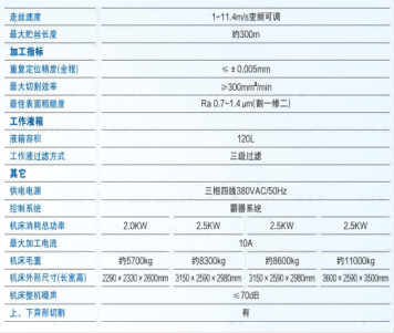 鏡像加工,常規錐度切割,比例放縮,上下異型切割,單段加工,四軸聯動切割,程序編輯,自動電極絲半徑補償,模擬檢查,加工條件自動轉換,回半程,絲杠螺距補償,找邊,絲找正,圖形實時跟蹤檢查,自動找孔中心,子程序調用,無人加工(加工完成斷電),加工過程中回原點和暫停點功能,運絲速度可調。